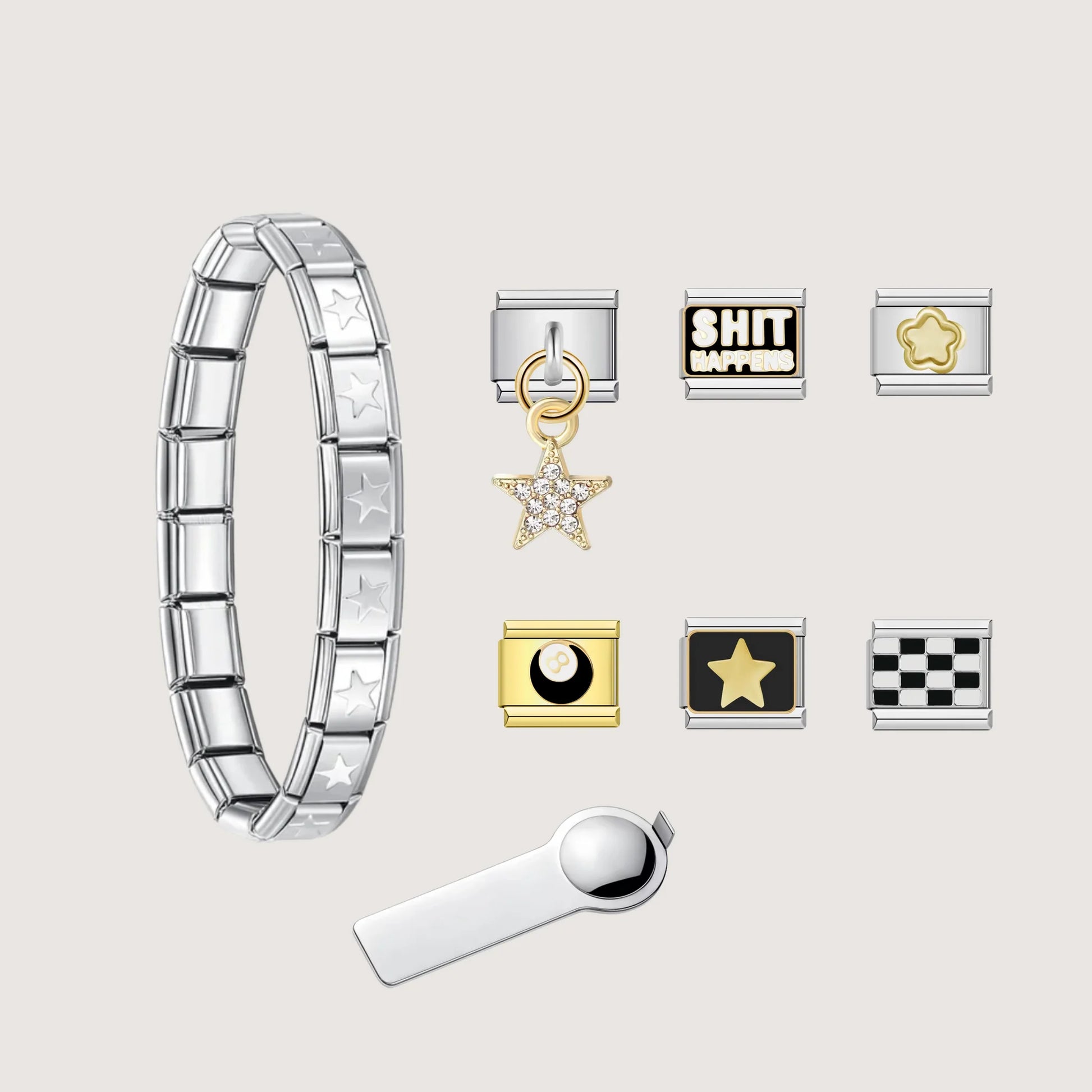 טיפ: הכלי להרכבת הצמיד מקל מאוד על החיבור וההסרה של הצ’ארמים — והוא כלול בחינם בכל הזמנה.