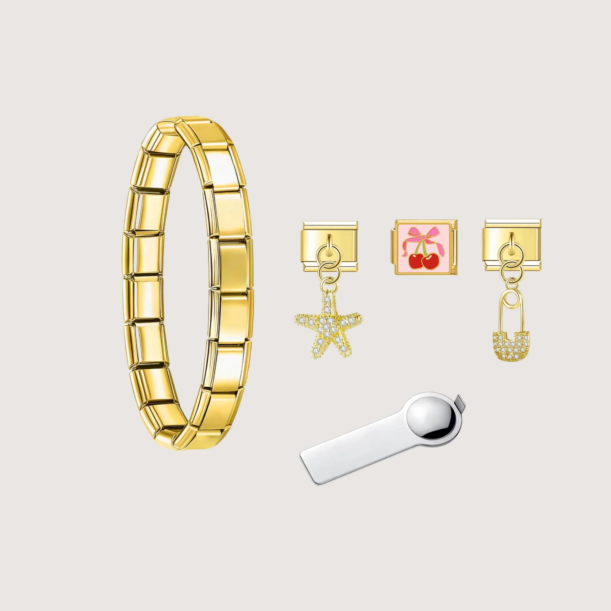 טיפ: הכלי להרכבת הצמיד מקל מאוד על החיבור וההסרה של הצ’ארמים — והוא כלול בחינם בכל הזמנה.